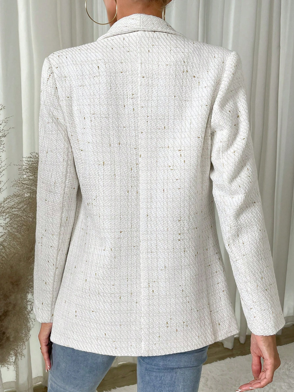O Blazer Isadora traduz elegância e poder em uma peça só. Feito em tweed texturizado off-white com linhas discretas em dourado claro, ele tem caimento impecável e corte alfaiatado, valorizando qualquer composição. Perfeito para compor desde looks profissionais até produções mais despojadas com jeans e top.