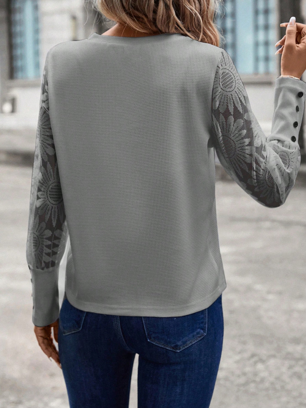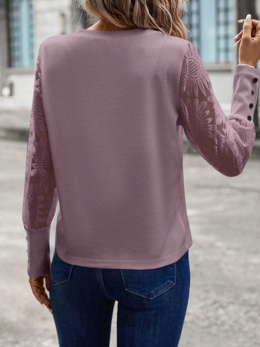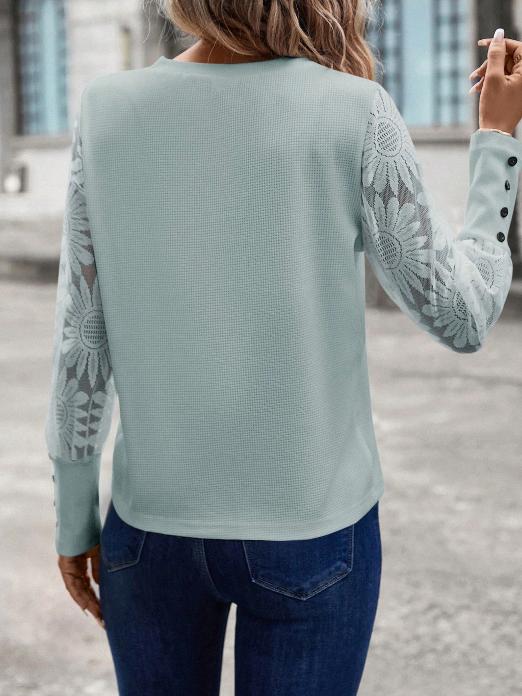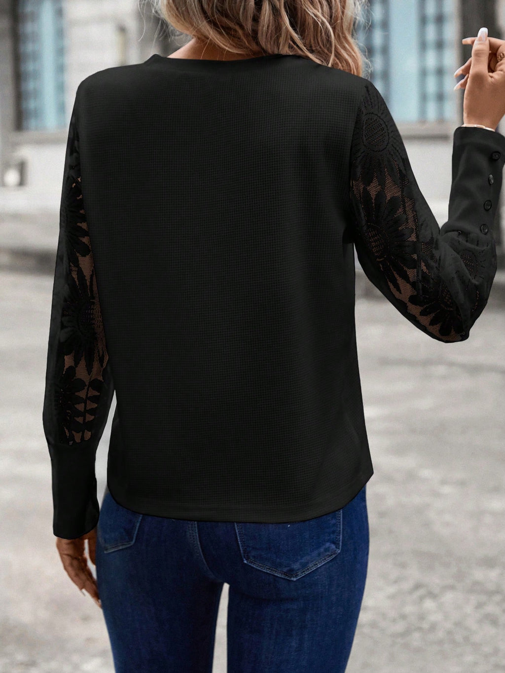 A Blusa Feminina “Eloá” é a escolha perfeita para quem busca elegância e delicadeza em uma única peça. Seu design combina corpo liso com mangas longas em renda floral transparente, trazendo um toque sofisticado e romântico. Os punhos com botões decorativos adicionam charme extra, enquanto o caimento leve proporciona conforto e liberdade de movimento. Ideal para compor looks casuais-chiques ou até produções mais formais, combinando perfeitamente com jeans, saias e calças sociais.