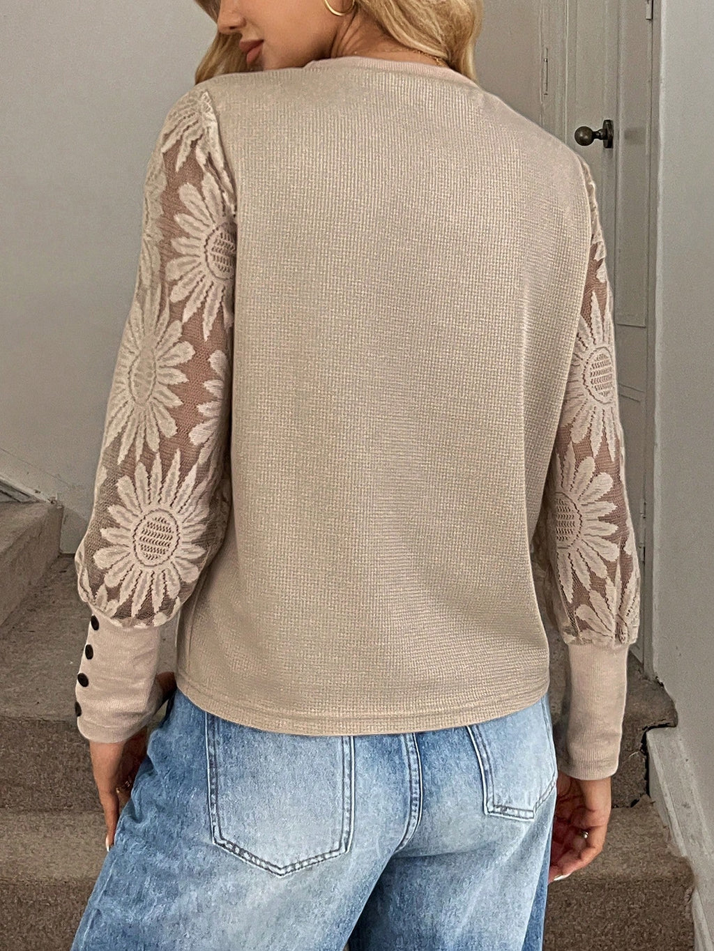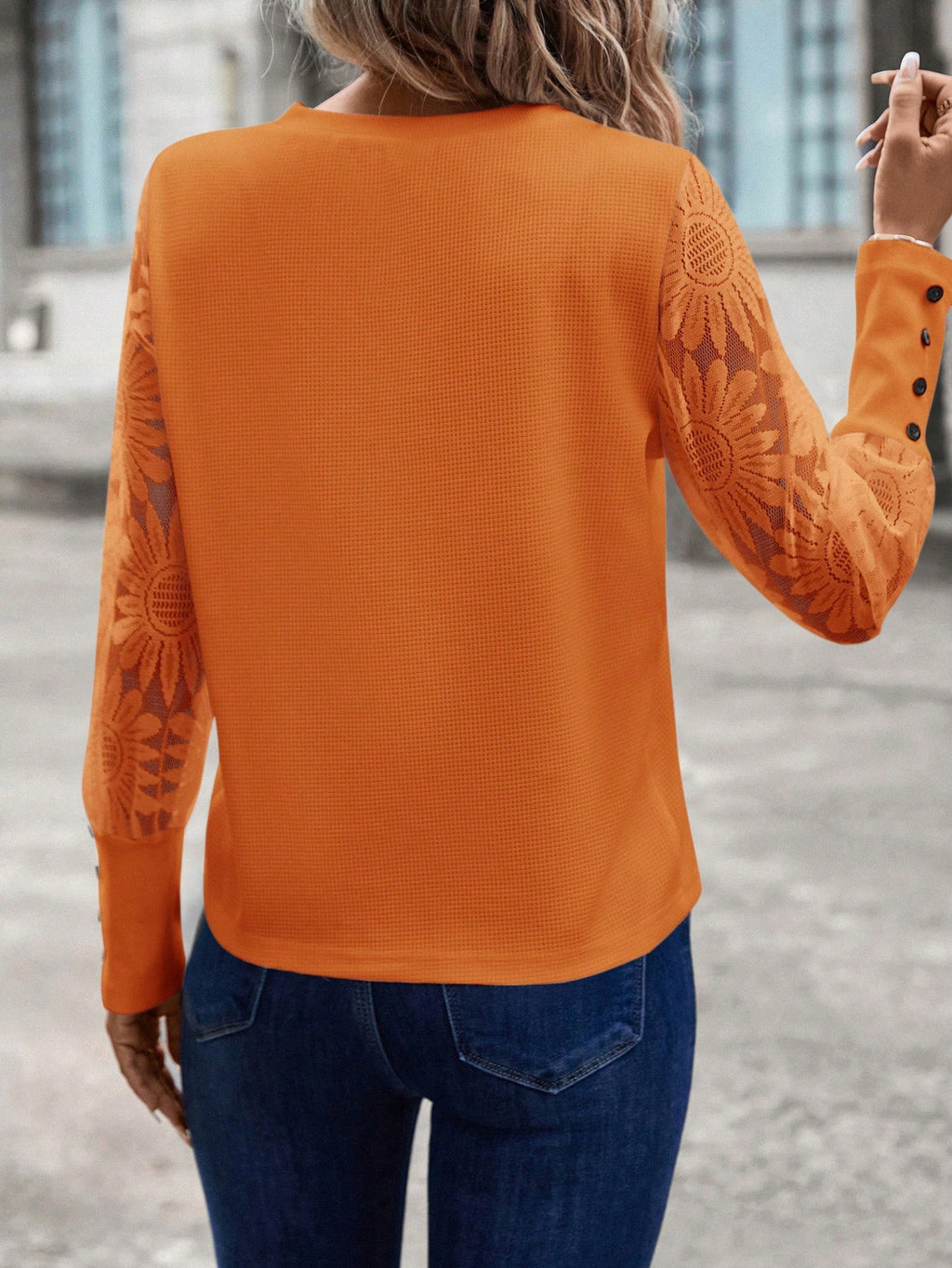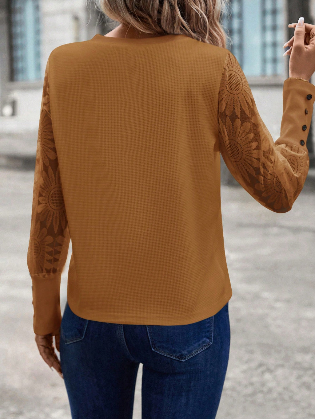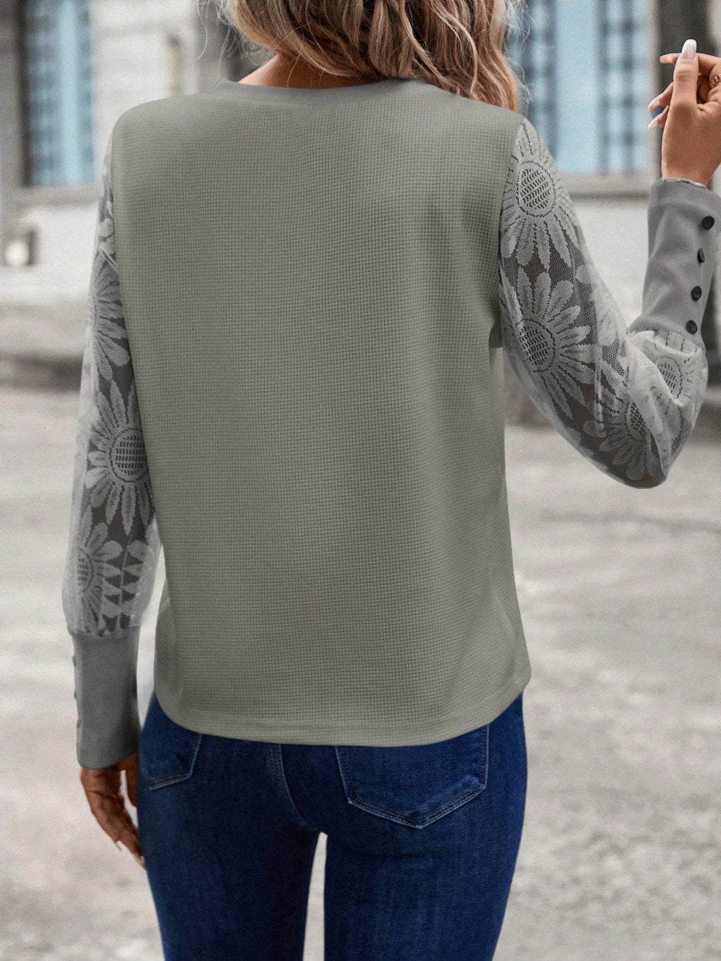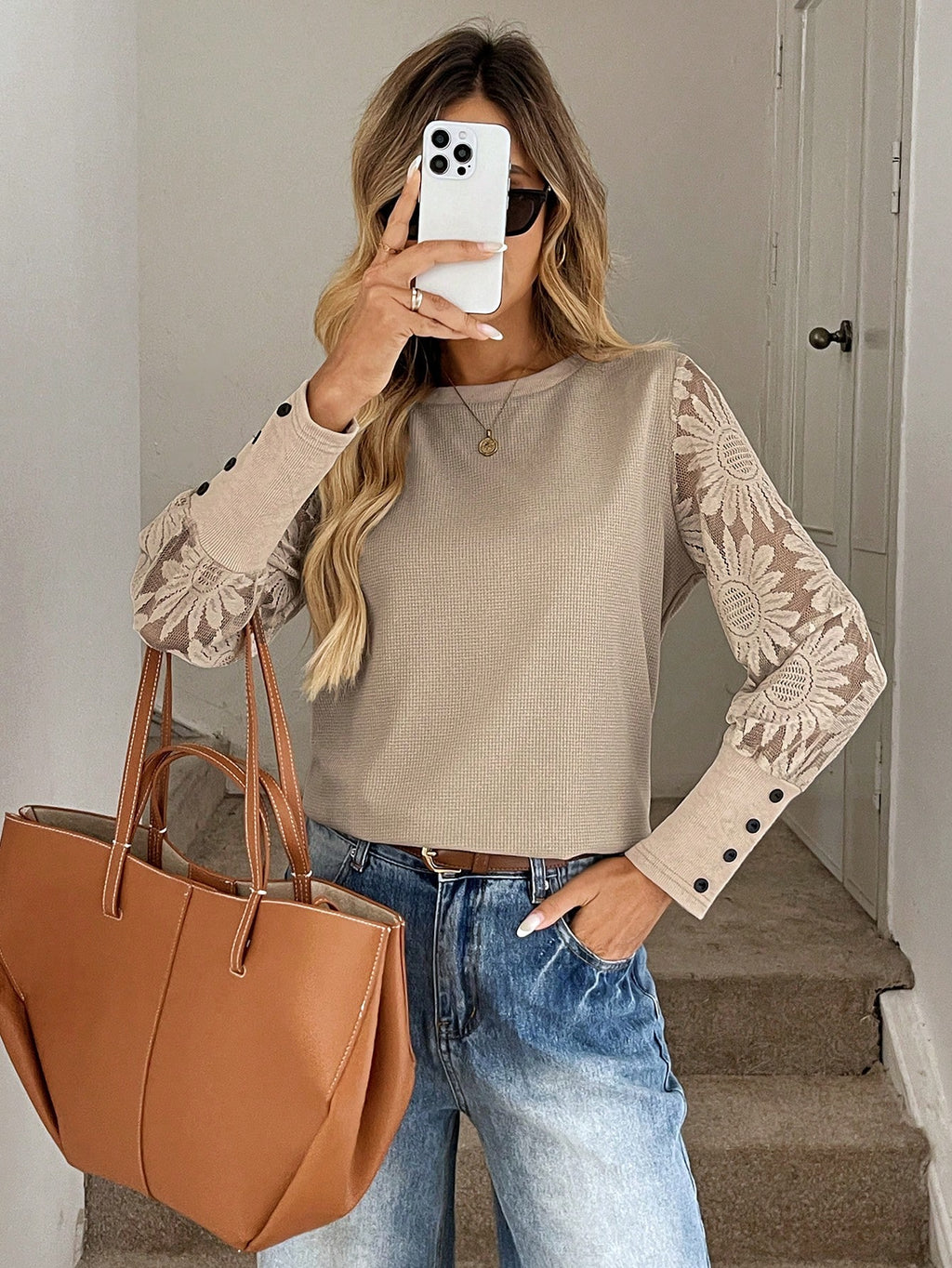 A Blusa Feminina “Eloá” é a escolha perfeita para quem busca elegância e delicadeza em uma única peça. Seu design combina corpo liso com mangas longas em renda floral transparente, trazendo um toque sofisticado e romântico. Os punhos com botões decorativos adicionam charme extra, enquanto o caimento leve proporciona conforto e liberdade de movimento. Ideal para compor looks casuais-chiques ou até produções mais formais, combinando perfeitamente com jeans, saias e calças sociais.