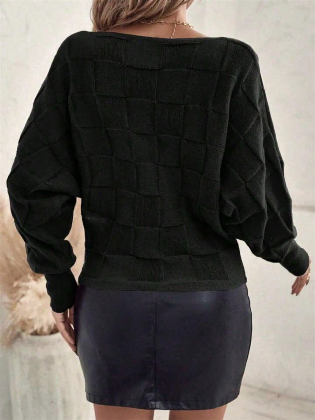 A Blusa Feminina Tricô Quadriculado é a peça perfeita para quem busca um visual sofisticado sem abrir mão do conforto. Com modelagem soltinha, mangas longas e gola levemente ombro a ombro, ela garante um caimento moderno e versátil. O design quadriculado no tricô acrescenta um toque de estilo único.