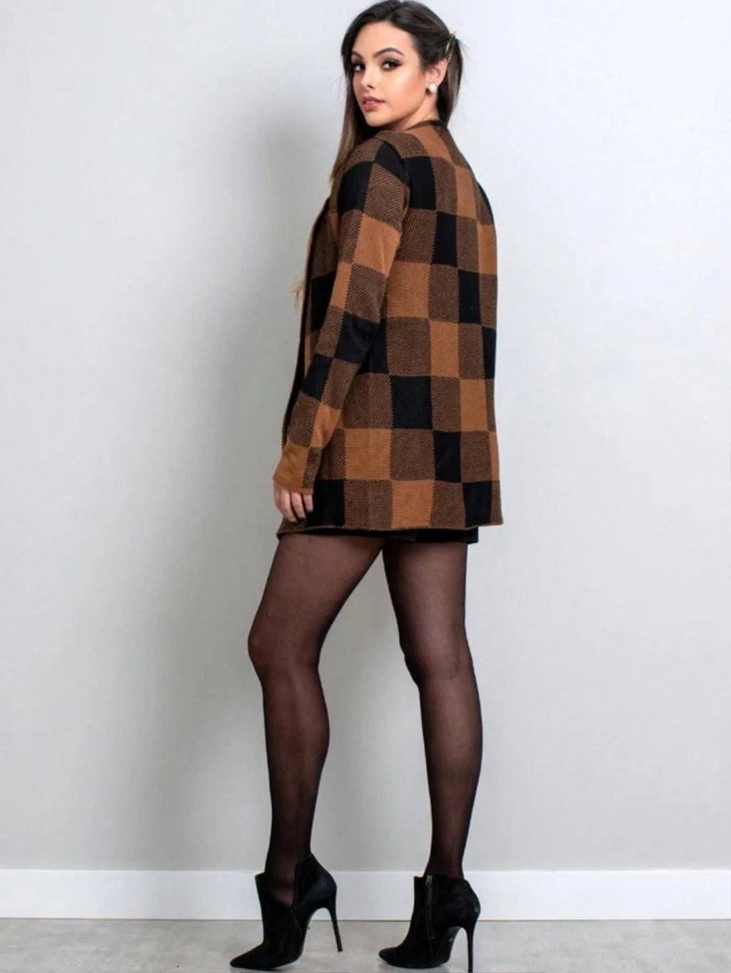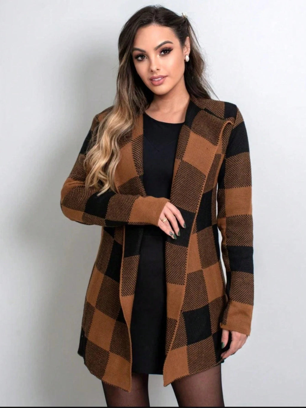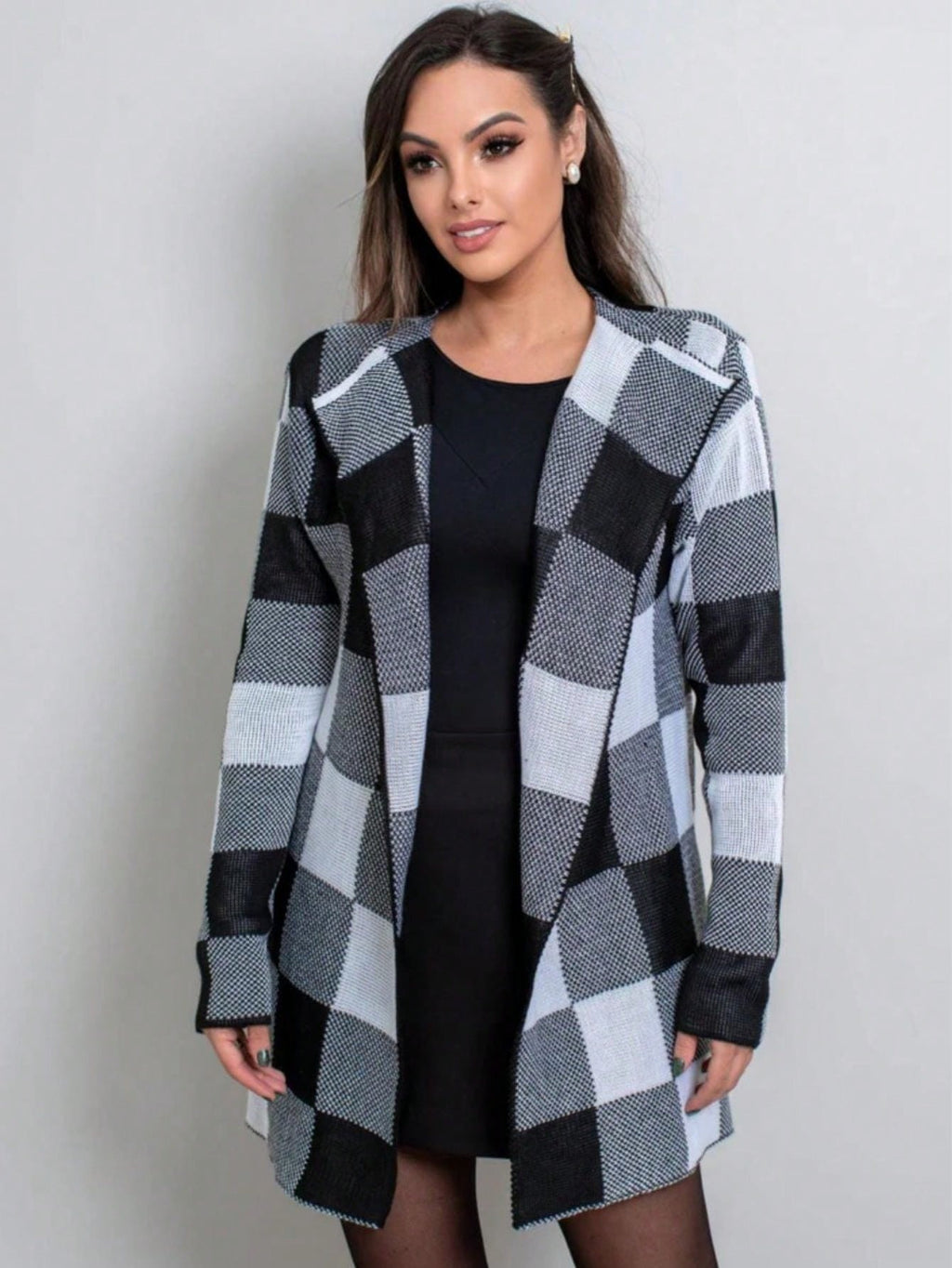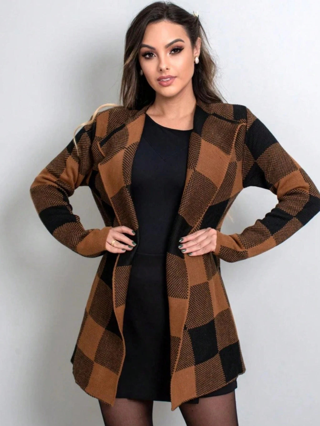 O Cardigan Isabella é a peça ideal para quem busca sofisticação e conforto no dia a dia. Com estampa xadrez marcante e corte moderno, ele é perfeito para compor looks quentinhos com muita personalidade. Versátil, combina com vestidos, calças ou saias – seja para o trabalho ou um passeio casual.