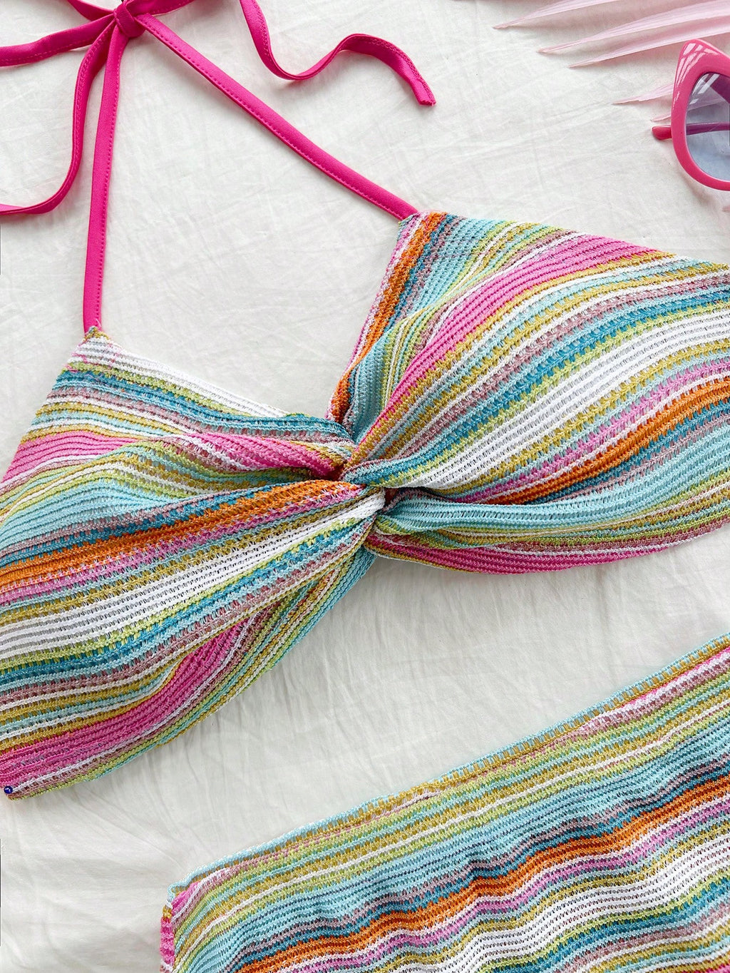 O Conjunto Gabrielly é a escolha perfeita para quem ama cor, leveza e estilo. Com um cropped frente única que valoriza o colo e uma saia listrada em tons vibrantes, finalizada com franjas rosa divertidas, esse look transmite alegria e descontração em cada detalhe.