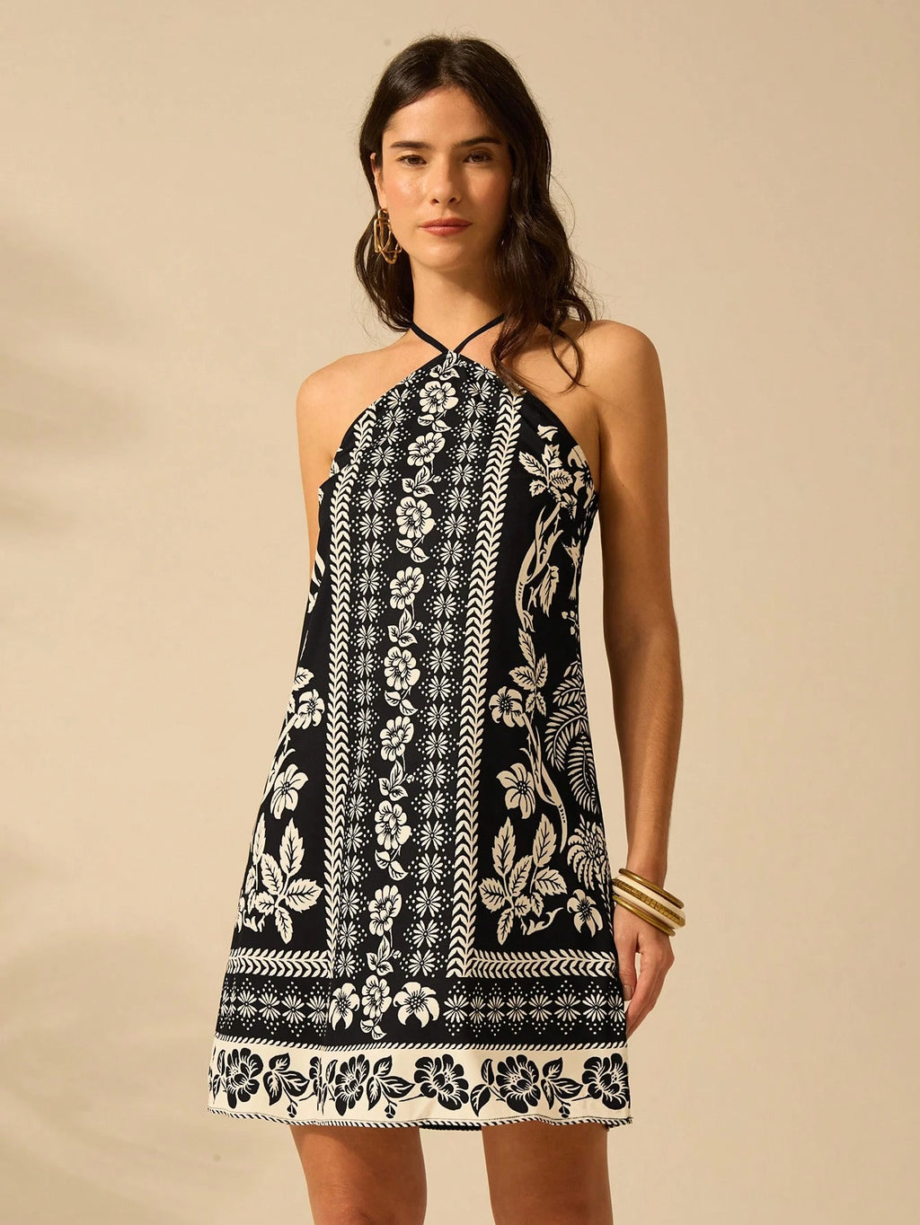 O Vestido Carla traduz estilo e modernidade em um design que combina conforto e sofisticação. Sua estampa floral em branco contrasta delicadamente sobre o fundo preto, criando um visual marcante e atemporal. O modelo curto e soltinho valoriza a feminilidade com frescor, sendo uma peça essencial para dias de calor e ocasiões especiais.