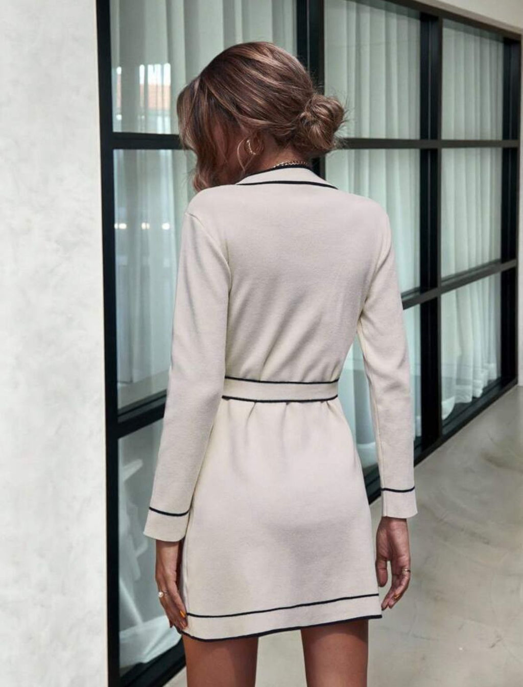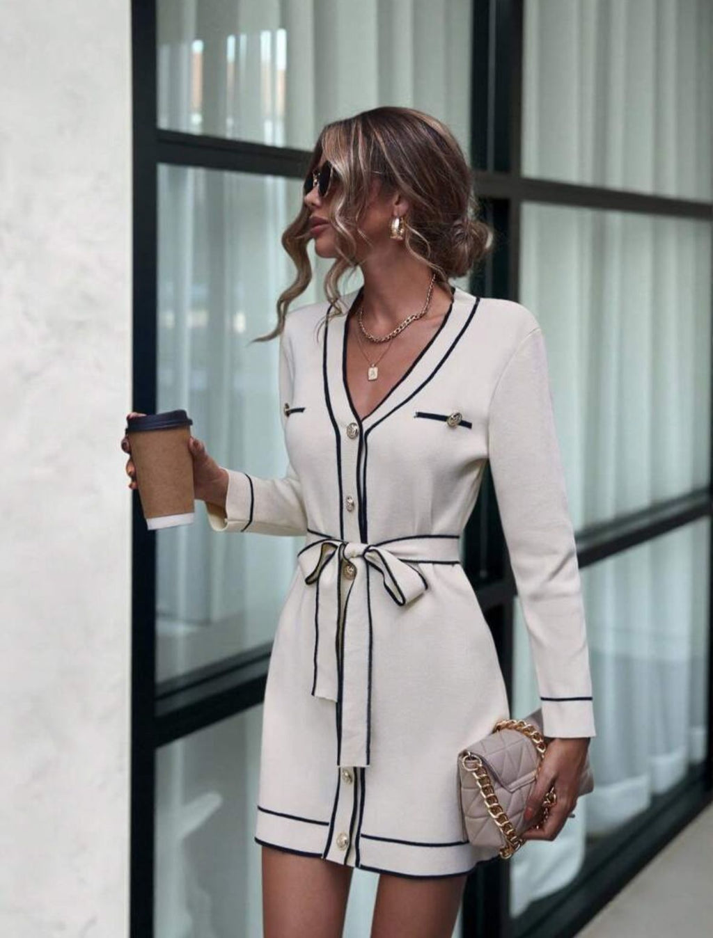 Apresentamos o Vestido Emilly, a união entre a sofisticação europeia e o conforto do tricô. Com corte inspirado na alfaiataria, ele possui modelagem ajustada, botões frontais e cinto com amarração, que valorizam a cintura de forma sutil e refinada.