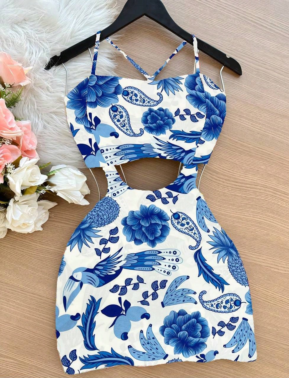 O Vestido Gabriela é a escolha perfeita para quem deseja um look inesquecível e moderno. Com corte cut-out na cintura e alças cruzadas nas costas, ele traz um toque de sensualidade equilibrado com um design tropical vibrante. Disponível em duas estampas marcantes – azul floral com pássaros e preto minimalista com estrelas e flores –, esse vestido é feito para mulheres confiantes e originais.