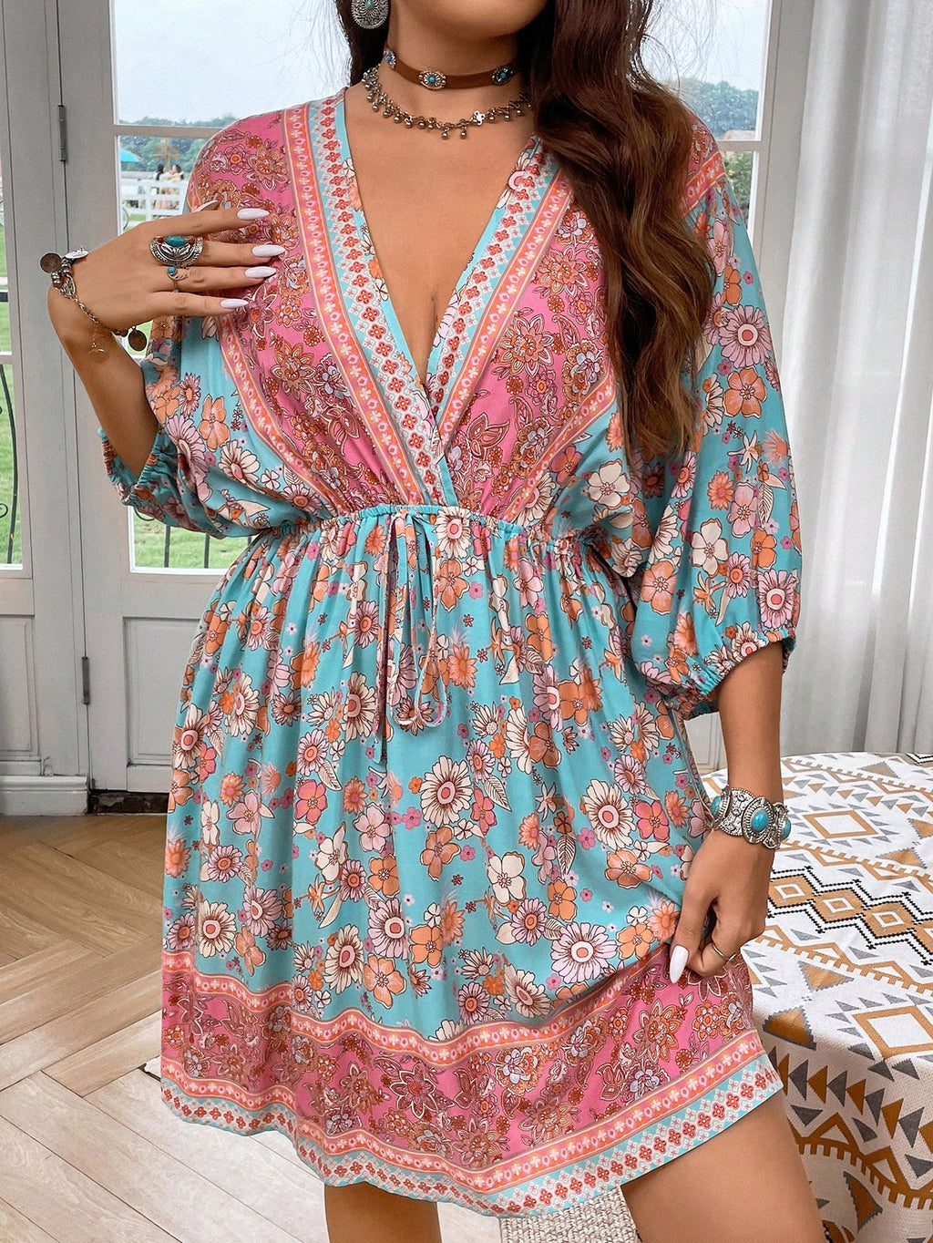 O Vestido Maria é a escolha ideal para mulheres que amam leveza e estilo boêmio. Com sua estampa floral vibrante em tons de azul e rosa, transmite alegria e feminilidade em cada detalhe. As mangas bufantes com elástico e a amarração ajustável na cintura garantem um caimento impecável e confortável.