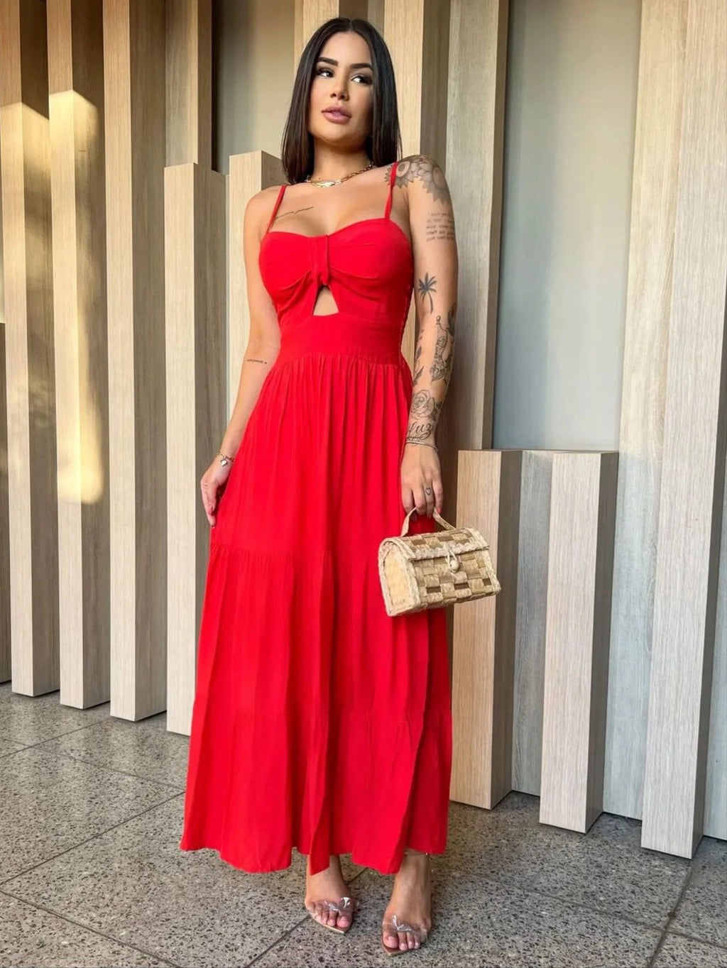 Combine com sandálias de salto, clutch de palha ou bolsa pequena e acessórios dourados para um visual sofisticado de verão.