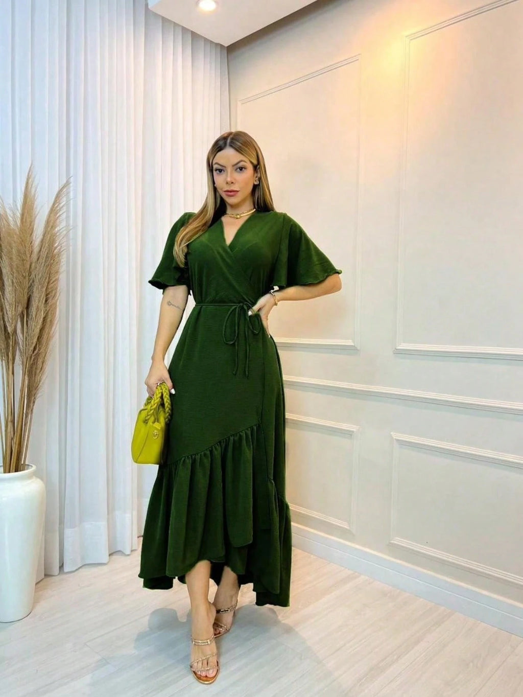 O Vestido Midi Isadora é a escolha perfeita para quem procura uma peça versátil e sofisticada. Com babado assimétrico, decote em V e amarração na cintura, ele valoriza a silhueta e garante conforto durante todo o dia. Disponível em diversas cores, é ideal para eventos, festas, jantares ou até para um look casual chic.