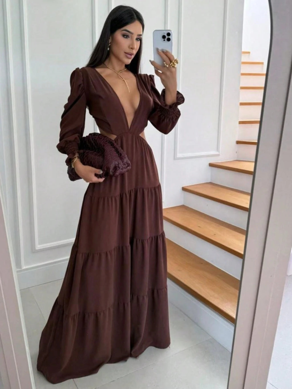 • ✨ Decote profundo em V que alonga e valoriza